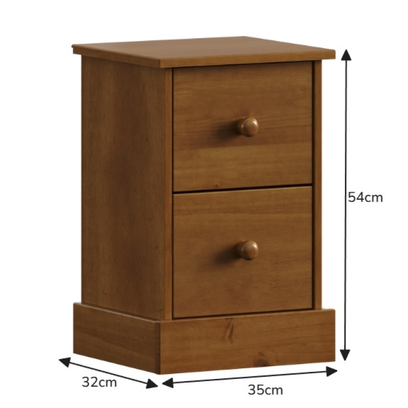 Furniture Farmhouse Dark 2 Drawer Bedside Cabinet. Crafted from solid pine and